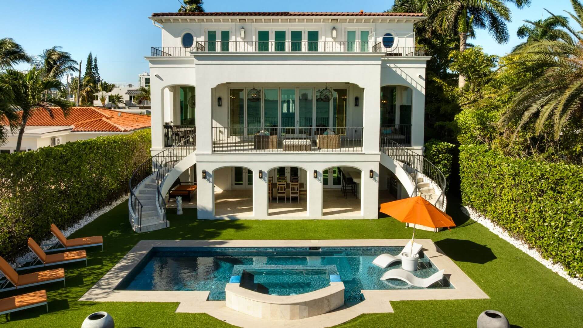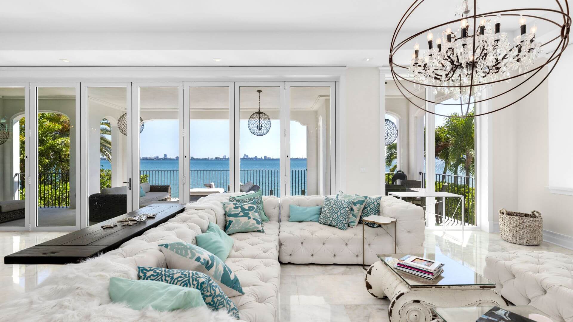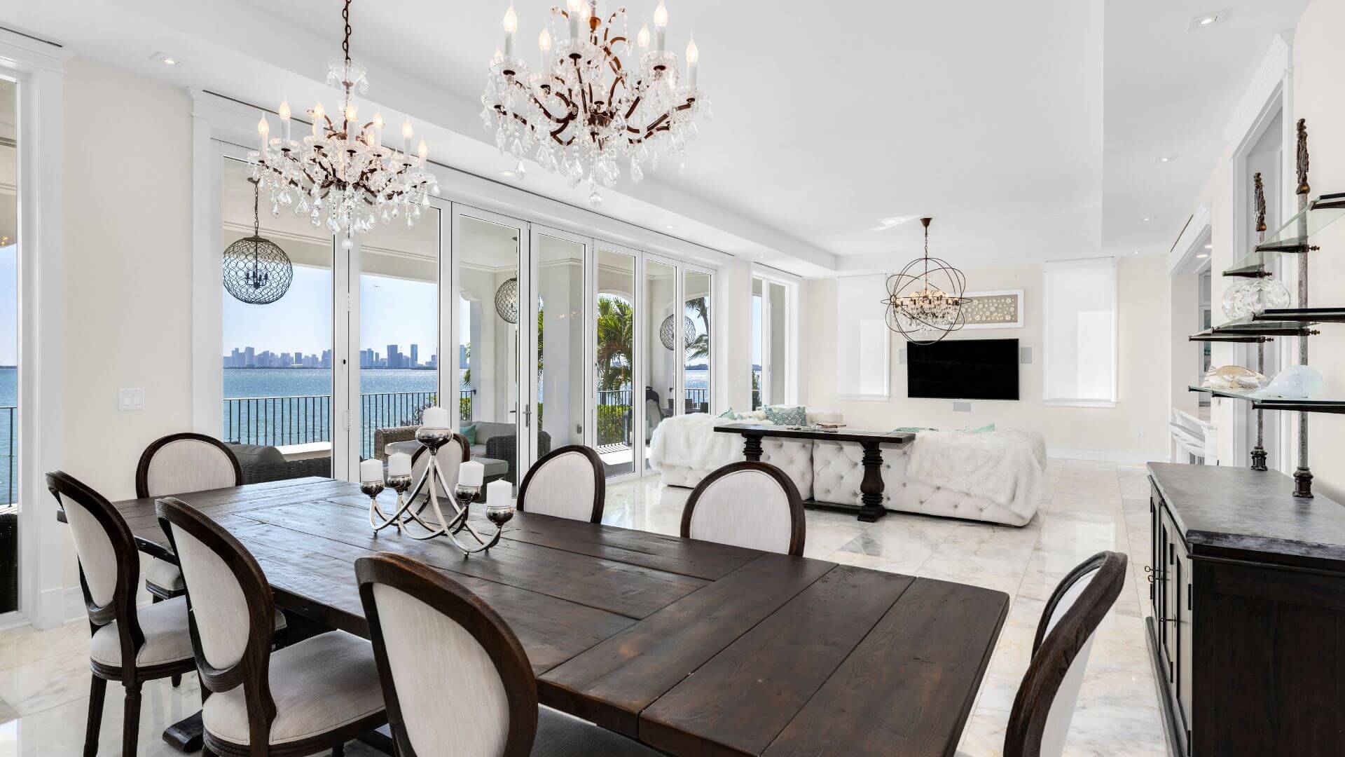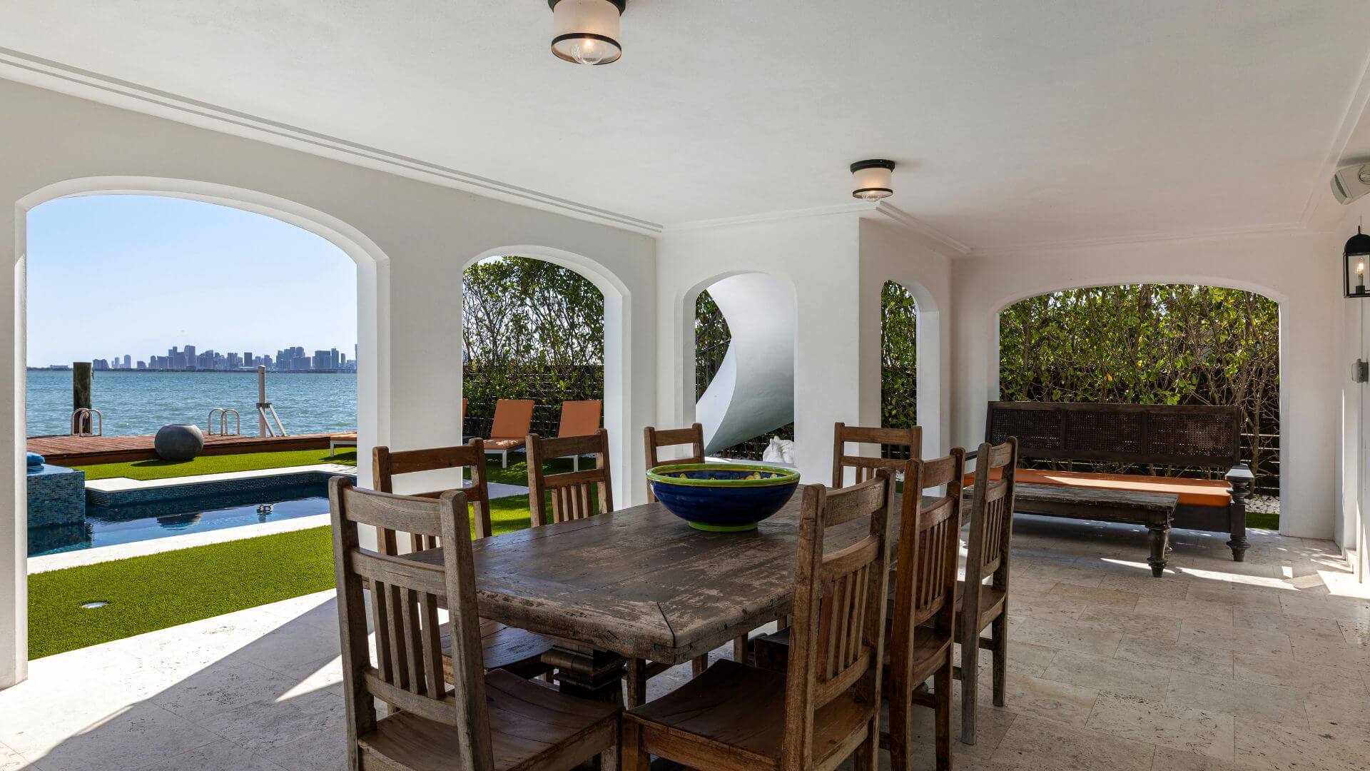 Island haven with sweeping bay and panoramic skyline views, a grand foyer, 6 en‑suite bedrooms, a chef’s kitchen and resort‑style terraces with a heated pool, 40‑ft dock and premium amenities including a theater, generator, 4.5 car garage and elevator that sits in between Miami Beach and Midtown Miami.